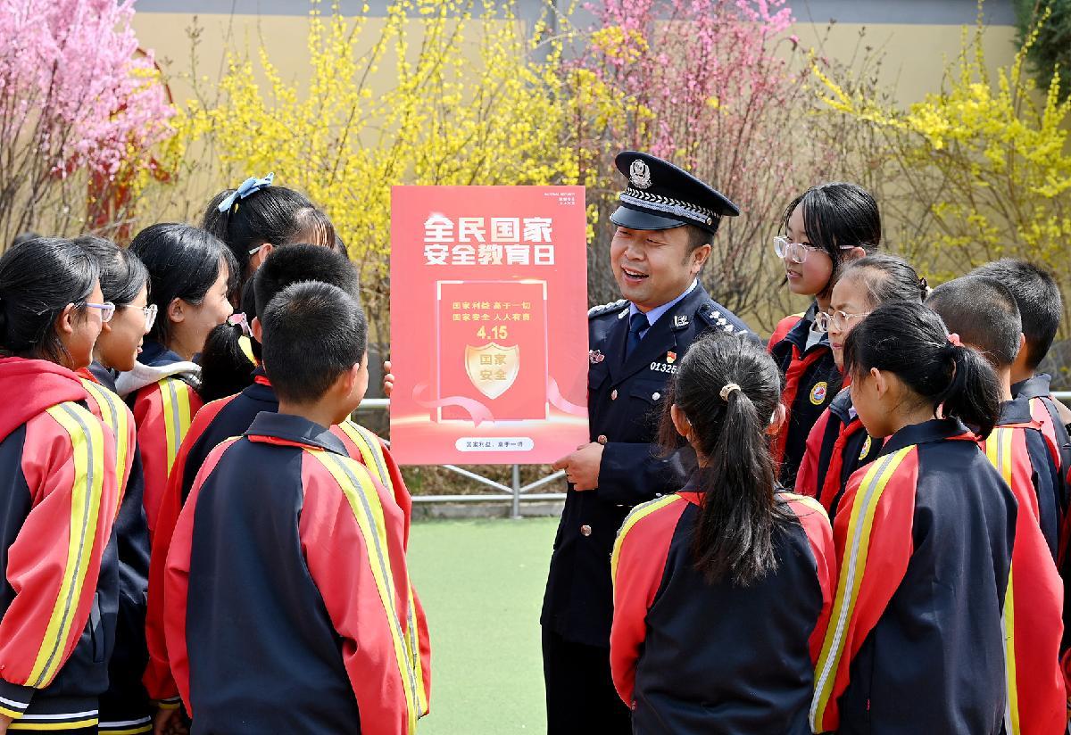 4月14日,甘肅省蘭州市公安局高新分局連搭派出所民警在轄區(qū)學校開展全民國家安全教育日主題宣傳。