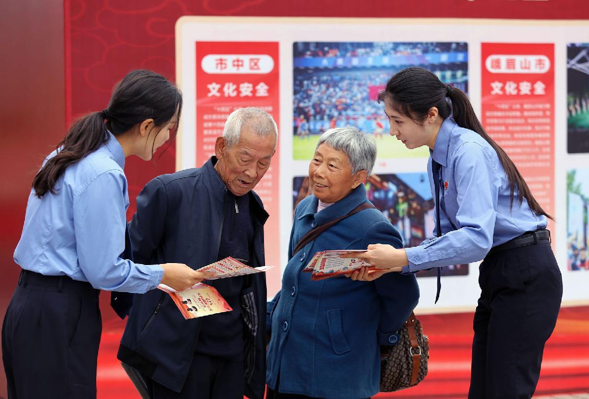4月15日,四川省樂山市市中區(qū)人民檢察院工作人員為市民宣講國家安全知識。