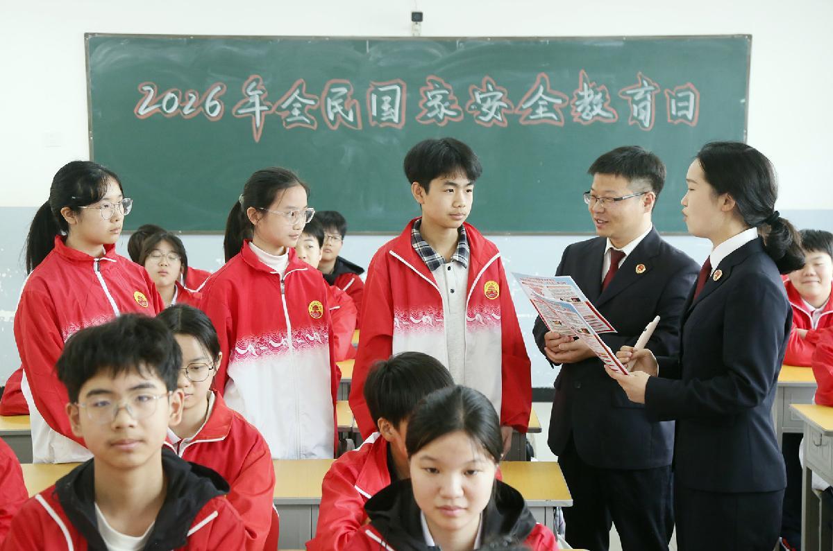 4月14日,河南省汝陽縣人民檢察院干警為城關鎮(zhèn)第三初級中學學生上全民國家安全教育課。