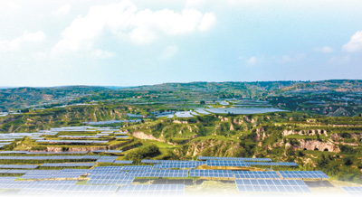 陜西省渭南市合陽縣,塬上架起光伏板。