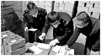 圖為北京海關(guān)關(guān)員上門對企業(yè)出口年貨進(jìn)行查驗。