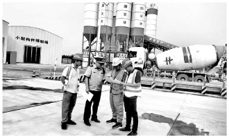圖為海南省生態(tài)環(huán)境執(zhí)法人員對(duì)混凝土(瀝青)攪拌企業(yè)開展送法幫扶活動(dòng)。