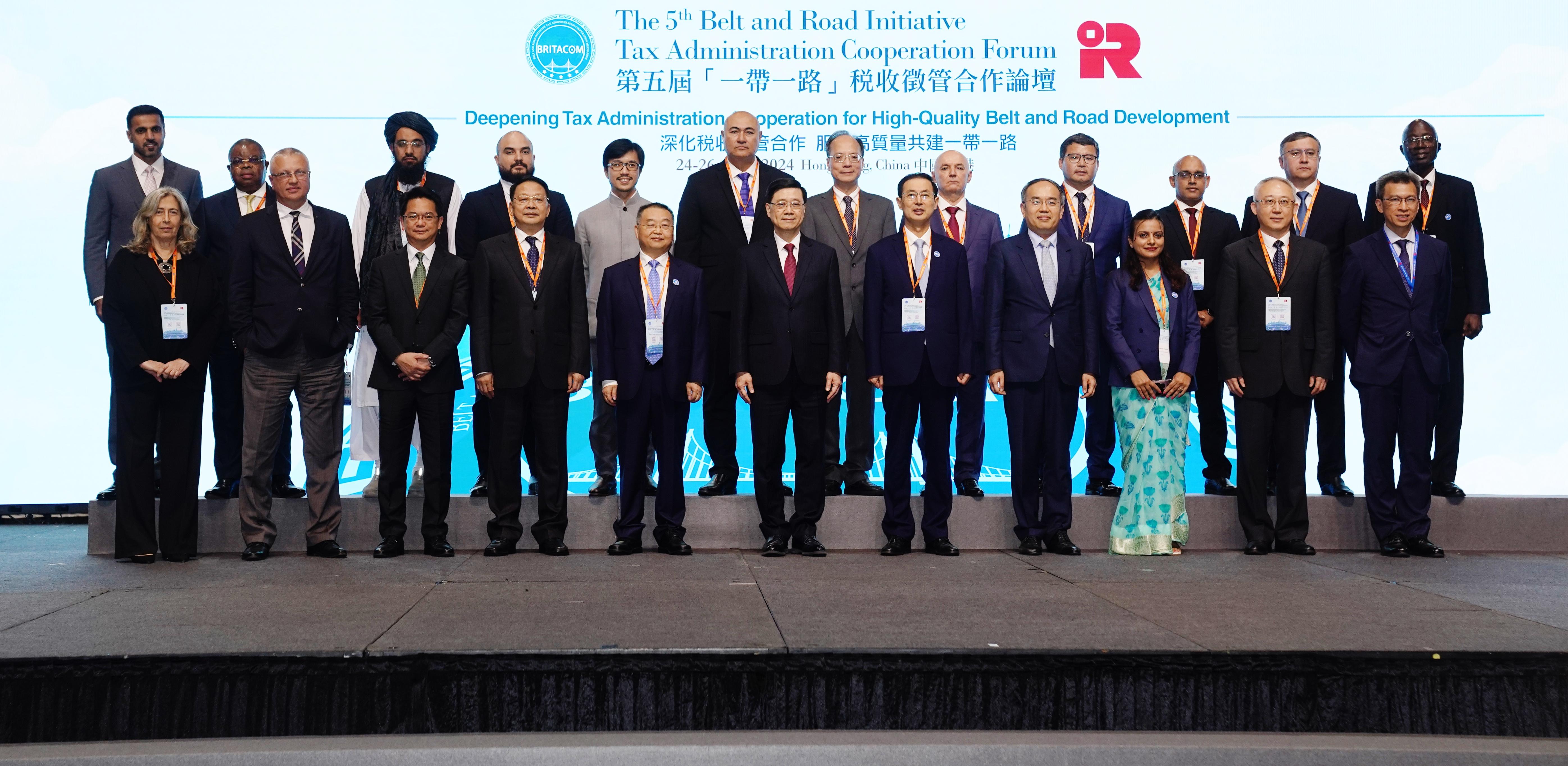 9月24日下午,第五屆“一帶一路”稅收征管合作論壇在香港亞洲國(guó)際博覽館開幕,來自近50個(gè)國(guó)家和地區(qū)的稅務(wù)部門負(fù)責(zé)人,經(jīng)濟(jì)合作與發(fā)展組織、國(guó)際貨幣基金組織等13個(gè)國(guó)際組織,40余家中外跨國(guó)企業(yè)代表共500余人出席論壇。與會(huì)代表聚焦“深化稅收征管合作 服務(wù)高質(zhì)量共建‘一帶一路’”主題,共商“一帶一路”稅收合作美好未來。香港特別行政區(qū)行政長(zhǎng)官李家超出席開幕式并致辭。中國(guó)國(guó)家稅務(wù)總局局長(zhǎng)胡靜林、上屆論壇主辦方格魯吉亞稅務(wù)局副局長(zhǎng)帕塔·基拉澤在開幕式上發(fā)表主旨演講。