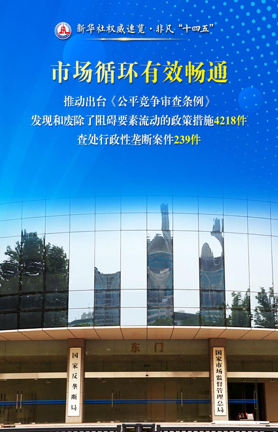 全面完成“證照分離”改革、推動(dòng)出臺《公平競爭審查條例》、查辦食品安全案件226.04萬件……22日舉行的“高質(zhì)量完成‘十四五’規(guī)劃”新聞發(fā)布會(huì)上,國家市場監(jiān)督管理總局就如何營造更有活力、更加公平的市場環(huán)境,為經(jīng)濟(jì)社會(huì)高質(zhì)量發(fā)展提供有力保障的工作情況做了介紹。這組海報(bào),帶你了解。