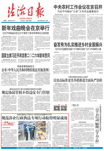 近日,我國(guó)第一部關(guān)于行政執(zhí)法監(jiān)督制度的國(guó)家層面專(zhuān)門(mén)立法——《行政執(zhí)法監(jiān)督條例》(以下簡(jiǎn)稱(chēng)《條例》)公布,自2026年2月1日起施行,標(biāo)志著具有中國(guó)特色的行政執(zhí)法監(jiān)督進(jìn)入全面法治化的新發(fā)展階段。