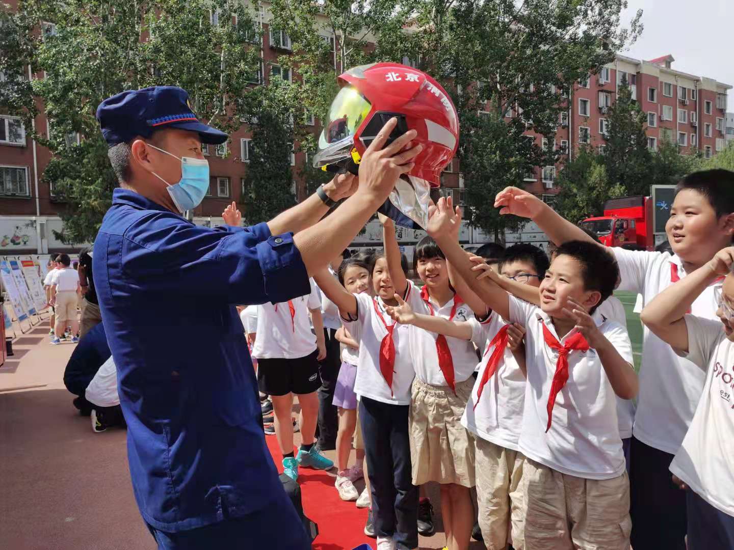 近日,北京石景山消防救援支隊(duì)走進(jìn)石景山區(qū)第二實(shí)驗(yàn)小學(xué),開展消防宣傳進(jìn)校園活動(dòng)。消防宣傳員向同學(xué)們講解了消防安全常識(shí),并組織全體師生體驗(yàn)了“火場(chǎng)逃生”情境。圖為同學(xué)們爭(zhēng)相試戴消防頭盔。