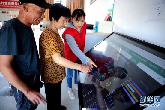 6月23日,在長興縣小浦鎮(zhèn)光耀村便民服務(wù)大廳,巾幗志愿者通過生活垃圾分類智慧大數(shù)據(jù)平臺,為村民講解垃圾分類。