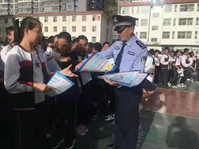 在“6·26”國(guó)際禁毒日即將到來之際,陜西省富縣公安局城關(guān)派出所民警進(jìn)學(xué)校開展禁毒宣傳。圖為6月18日,民警向?qū)W生發(fā)放宣傳資料、宣講禁毒法規(guī)。