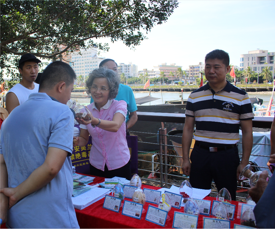 值“6·26”國際禁毒日到來之際,海南省??谑忻捞m區(qū)海甸街道海岸線驛站開展“護(hù)航自貿(mào)港—禁毒在行動暨慶祝建黨100周年”為主題的全民禁毒宣傳。圖為6月20日,工作人員為漁民介紹毒品的危害。
