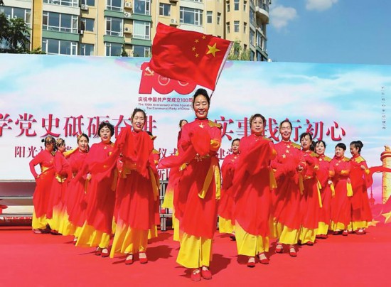 建黨百年,老百姓也迎來了高興的節(jié)日,大家歡喜雀躍,愛黨之情溢于言表。圖為長春市陽光社區(qū)開展的慶祝建黨百年活動(dòng)。(記者吳茗 攝)