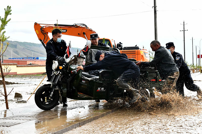 7月15日,新疆哈密市伊吾縣前山鄉(xiāng)出現(xiàn)雷雨天氣,隨后突降暴雨,17時10分許,由于降水量逐漸增大引發(fā)洪水,駐守在哈密市伊吾縣前山鄉(xiāng)的哈密邊境管理支隊伊吾邊境管理大隊前山邊境派出所立即啟動突發(fā)情況緊急預案,聯(lián)合當?shù)剜l(xiāng)政府出動9名民警,6名輔警和15名護邊員組成“黨員突擊隊”,攜帶救援工具趕往受災嚴重的前山鄉(xiāng)中心村開展救援。