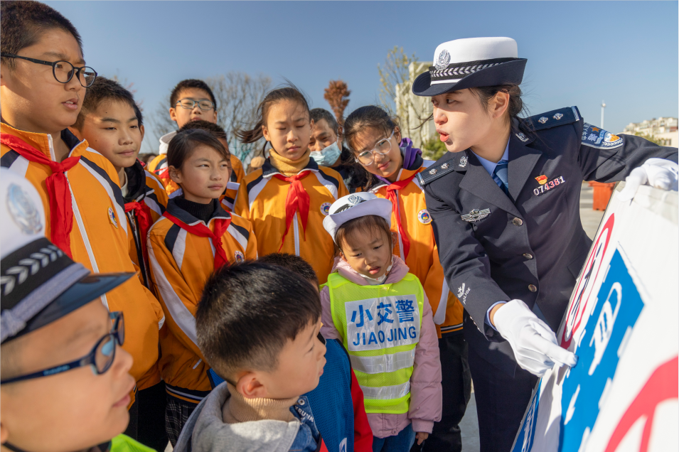 11月11日,安徽省含山縣公安局交管大隊(duì)邀請(qǐng)轄區(qū)幼兒園、小學(xué)生代表,以“小記者”身份走進(jìn)警營(yíng),開展“守法規(guī)知禮讓 安全文明出行”為主題的交通安全宣傳活動(dòng)?;顒?dòng)現(xiàn)場(chǎng),民警專門為“小記者”們?cè)O(shè)計(jì)了情景體驗(yàn)、游戲問答等互動(dòng)內(nèi)容。通過活動(dòng),“小記者”們拓寬了交通安全知識(shí)面,增強(qiáng)了文明交通意識(shí)。圖為民警講解交通標(biāo)志標(biāo)識(shí)。