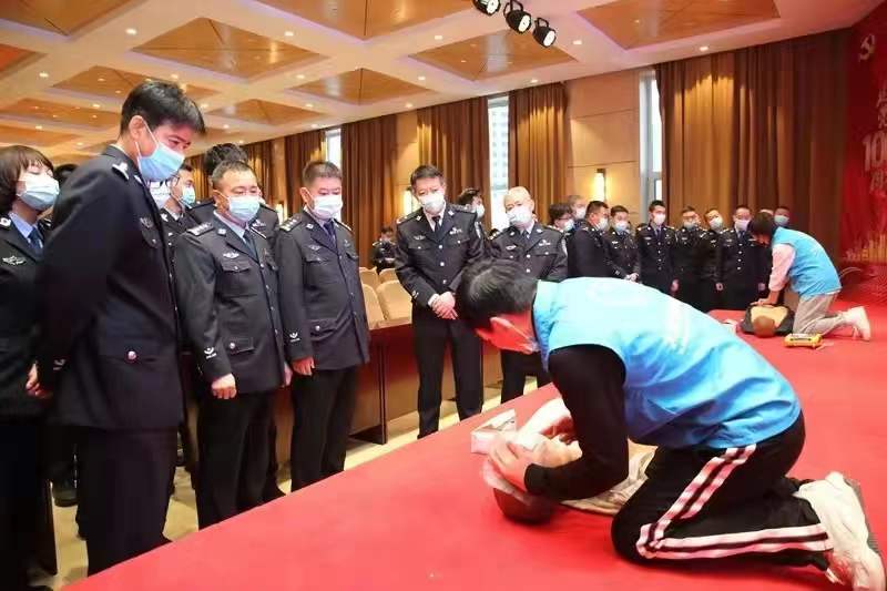 為進(jìn)一步加強(qiáng)民警身心健康保護(hù),為春運(yùn)安保、冬奧安保打下基礎(chǔ),近日,太原鐵路公安局大同公安處邀請(qǐng)山西省紅十字賑災(zāi)救援搜救隊(duì)為全處干部民警開展應(yīng)急救護(hù)技能培訓(xùn)講座,進(jìn)一步提高民警自救意識(shí)和急救水平。圖為培訓(xùn)現(xiàn)場。