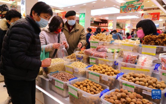 1月28日,市民在位于上海南京東路步行街上的三陽(yáng)南貨店內(nèi)選購(gòu)食品。
