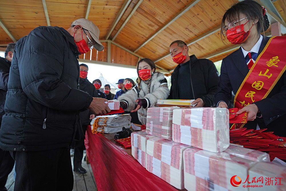寧波象山茅洋鄉(xiāng)銀洋村村民的過年“大禮包”。人民網(wǎng) 章勇濤攝