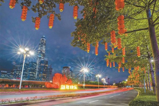 深南大道水晶島裝飾得紅紅火火。 深圳特區(qū)報(bào)記者 李忠 攝