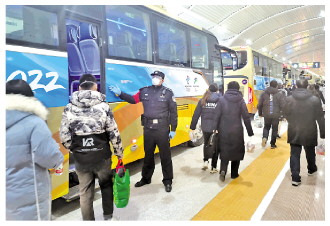 乘客大多都是國外友人,主要包括技術(shù)官員和媒體記者。冬奧列車運(yùn)輸開始后,每天上下午都有一個運(yùn)輸高峰期。不少國外友人提著大包小包上下車,趕往賽場或駐地。在這期間,張雄要做好接車工作,確保乘客安全進(jìn)出站。同時要應(yīng)對突發(fā)情況,“國外友人對列車的認(rèn)知和我們不一樣,他們不太理解我們?yōu)槭裁匆崆?分鐘停止檢票。因此,我們要配合客運(yùn)部門做好解釋工作?!睆埿壅f,此外,還有粗心落包的旅客,民警們要快速找到失主并將包送上車。