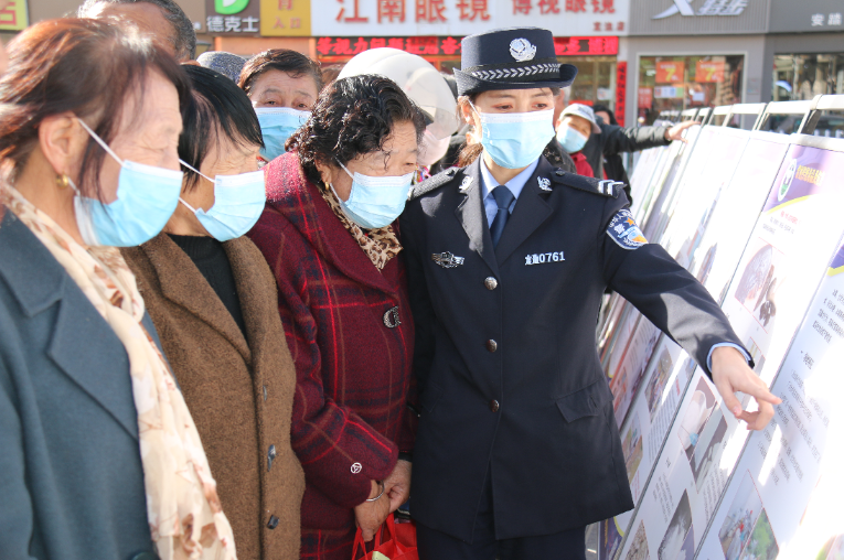 近日,陜西省定邊縣公安局、縣禁毒辦組織開展“禁絕毒品、不讓毒品進(jìn)我家”宣傳活動,民警在定邊縣政法廣場擺放禁毒宣傳展板,向過往群眾散發(fā)禁毒宣傳材料,接受群眾咨詢200余人次。圖為民警向群眾講解禁毒知識。