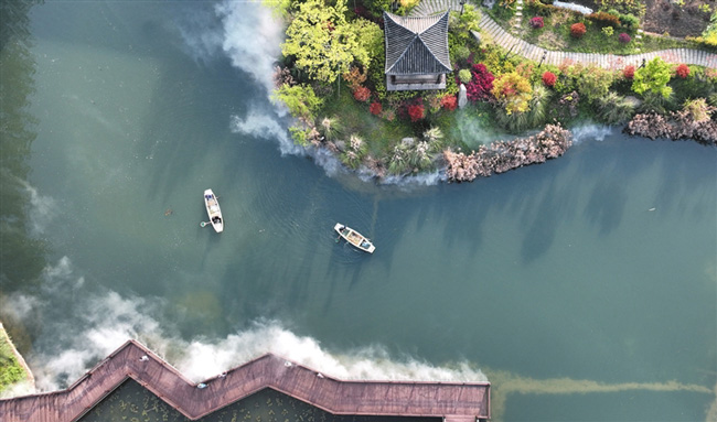 3月29日,湖州市德清縣洛舍鎮(zhèn)東衡村廟前兜河道水清景美,河道保潔員正在日常保潔。2022年來(lái),該鎮(zhèn)深入實(shí)施立體式“水下森林”生態(tài)修復(fù)工程,自然景觀優(yōu)美怡人。(謝尚國(guó))