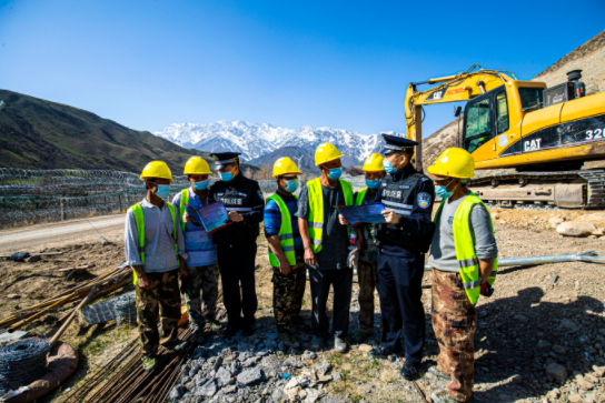 隨著天氣逐漸轉(zhuǎn)暖,在邊境地區(qū)務(wù)工、放牧的流動(dòng)人員日漸增多。近日,新疆出入境邊防檢查總站伊犁邊境管理支隊(duì)紅卡子邊境派出所采取發(fā)放傳單和現(xiàn)場(chǎng)宣講相結(jié)合的方式,開(kāi)展邊境法律法規(guī)宣傳活動(dòng)。圖為民警向邊境務(wù)工人員宣傳邊防法規(guī)政策,增強(qiáng)群眾邊境安全意識(shí)。