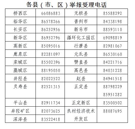 為便于更好開展專項(xiàng)整治行動,充分發(fā)揮群眾的監(jiān)督作用,精準(zhǔn)受理辦理群眾舉報(bào),石家莊市住房和城鄉(xiāng)建設(shè)局公布舉報(bào)受理電話和違法行為認(rèn)定標(biāo)準(zhǔn)。