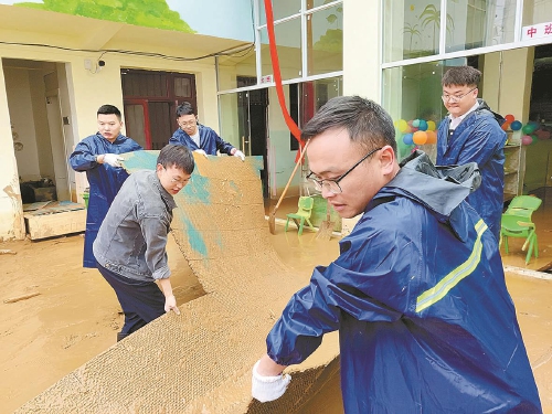 近日,貴州省織金縣出現(xiàn)特大暴雨天氣,造成部分地區(qū)發(fā)生洪澇災(zāi)害。織金縣檢察院迅速派出30余名檢察干警組成應(yīng)急救援隊(duì),參與搶險(xiǎn)救援和災(zāi)后恢復(fù)工作。圖為檢察干警在該縣熊家場(chǎng)鎮(zhèn)參與清理校舍。記者張安 通訊員邱峰 攝