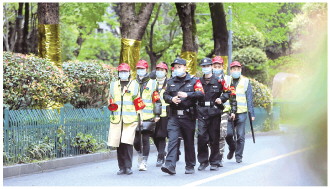 圖① 謝經(jīng)祿帶領(lǐng)“平安社區(qū)”警民聯(lián)防志愿隊在小區(qū)巡邏。
