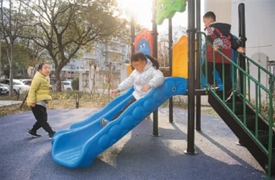 1月18日,浙江省寧波市江北區(qū)桃源小區(qū),小朋友在改造完的小區(qū)公園里玩耍。新華社記者 江漢攝