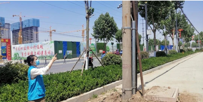 5月17日,居民反映的電線桿傾斜問(wèn)題已解決,劉沙進(jìn)行核查。 李大利 攝