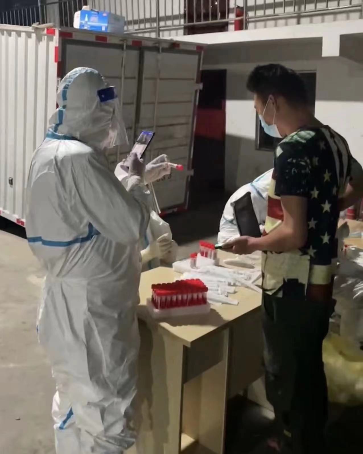 到達(dá)目的地后,我們有組織地迅速與社區(qū)對(duì)接,了解情況、熟悉工作流程、掌握相關(guān)政策。在完成一系列的準(zhǔn)備工作后,我正式踏上了防疫戰(zhàn)場。一邊拿著大喇叭維護(hù)各個(gè)樓的核酸排隊(duì)秩序,一邊幫助成百上千人查看健康碼,輔助醫(yī)護(hù)人員開展核酸檢測……盡管我一個(gè)人的力量稍顯微弱,但仍然努力地在每一個(gè)有需求的地方貢獻(xiàn)自己的力量。