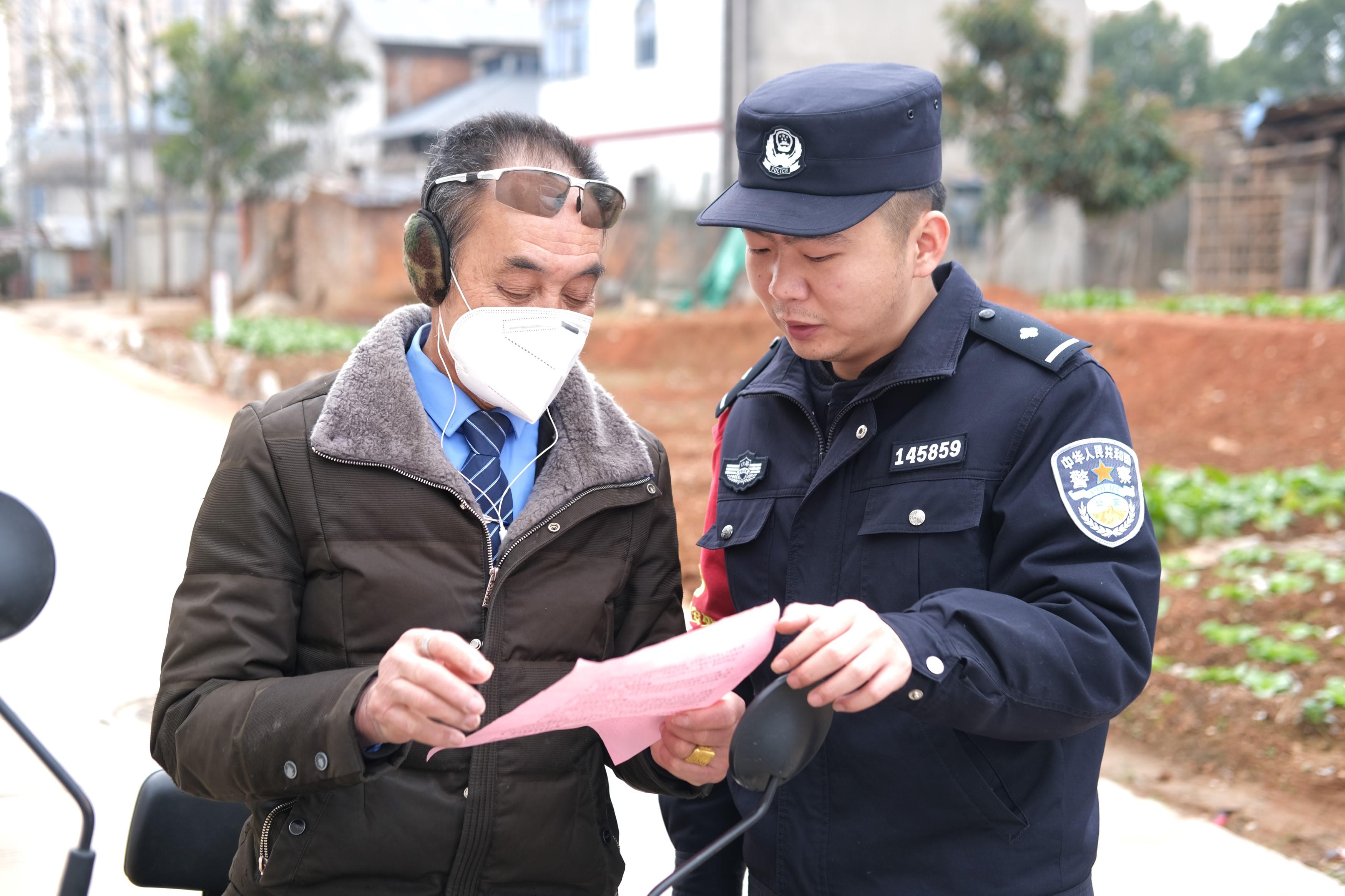 “小劉警官來了……”村民的招呼聲此起彼伏。劉洪均就像到老友家做客一樣自然地回應(yīng):“來轉(zhuǎn)轉(zhuǎn),來轉(zhuǎn)轉(zhuǎn)?!彪S后便和幾位路邊的老人拉起了家常。閑談之中,他一邊給老人們發(fā)放安全單,一邊講授反詐常識。