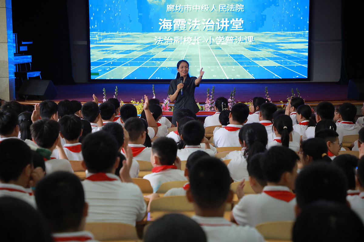 9月6日,河北省廊坊市中級人民法院法治副校長“開學(xué)第一課”走進(jìn)廊坊市第一實驗小學(xué)。該院未成年人案件綜合審判庭庭長、廊坊市第一實驗小學(xué)法治副校長張海霞攜《海霞法治講堂》系列普法視頻,以預(yù)防校園欺凌為題進(jìn)行授課。據(jù)了解,《海霞法治講堂》以法官張海霞為原型,運用數(shù)字虛擬技術(shù),合成河北省首個AI法官向未成年人講授法治課程。