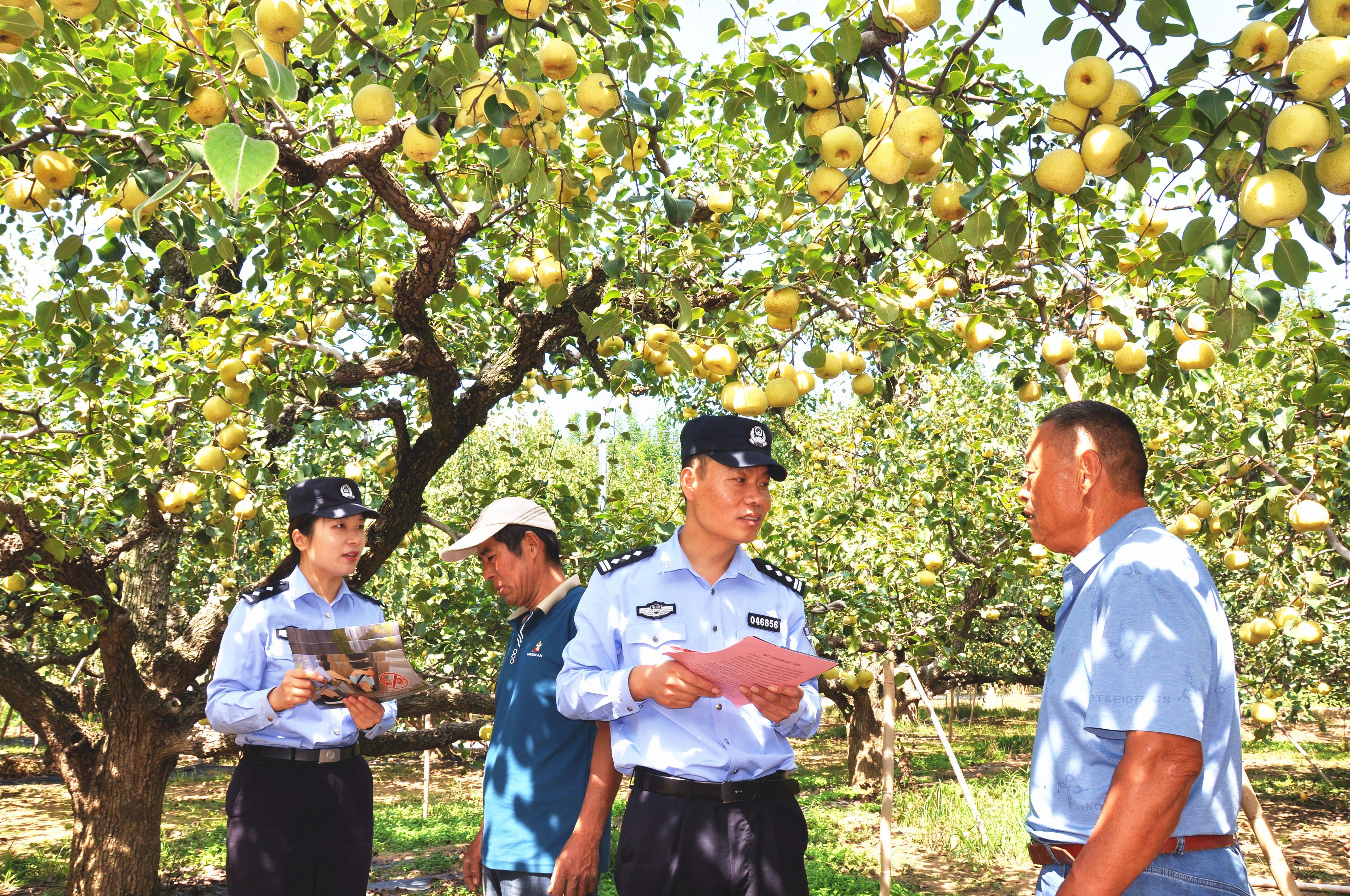 金秋時節(jié),梨果飄香。素有“世界梨都”之稱的安徽省碭山縣50萬畝酥梨迎來“采摘節(jié)”,果園里到處一派繁忙景象。碭山縣公安局結(jié)合轄區(qū)實際,組織民輔警深入果園,開展治安巡邏、糾紛化解、反詐宣傳。圖為民警在轄區(qū)梨園開展普法宣傳。 通訊員 張廣星 攝