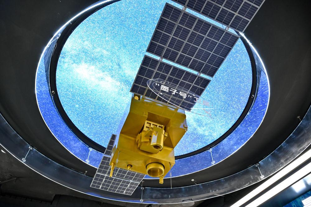 在位于安徽省合肥市的中電信量子信息科技集團(tuán)有限公司科技體驗(yàn)館內(nèi)拍攝的“墨子號(hào)”量子衛(wèi)星模型(2025年7月1日攝)。新華社記者 張鋮 攝
