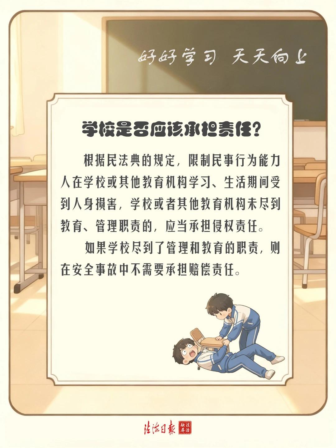 那學(xué)校需要承擔(dān)責(zé)任嗎?民法典規(guī)定,要看學(xué)校是否盡到教育、管理職責(zé)。