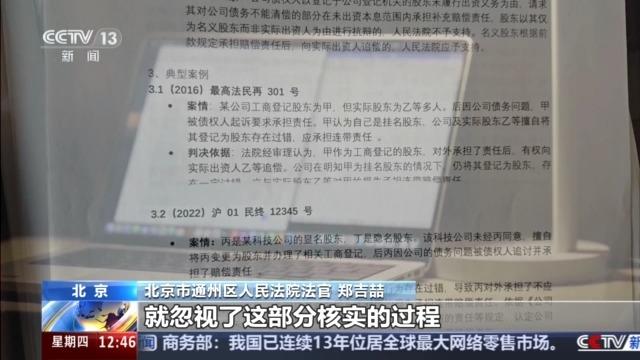 北京市通州區(qū)人民法院法官 鄭吉喆:特別是當(dāng)時(shí)她援引了上海一中院的2022滬01民終12345號(hào),這是一個(gè)民間借貸的案件,這個(gè)跟現(xiàn)在原告代理人向我們提交的股權(quán)代持是一點(diǎn)關(guān)系都沒有,可以說叫風(fēng)馬牛不相及。