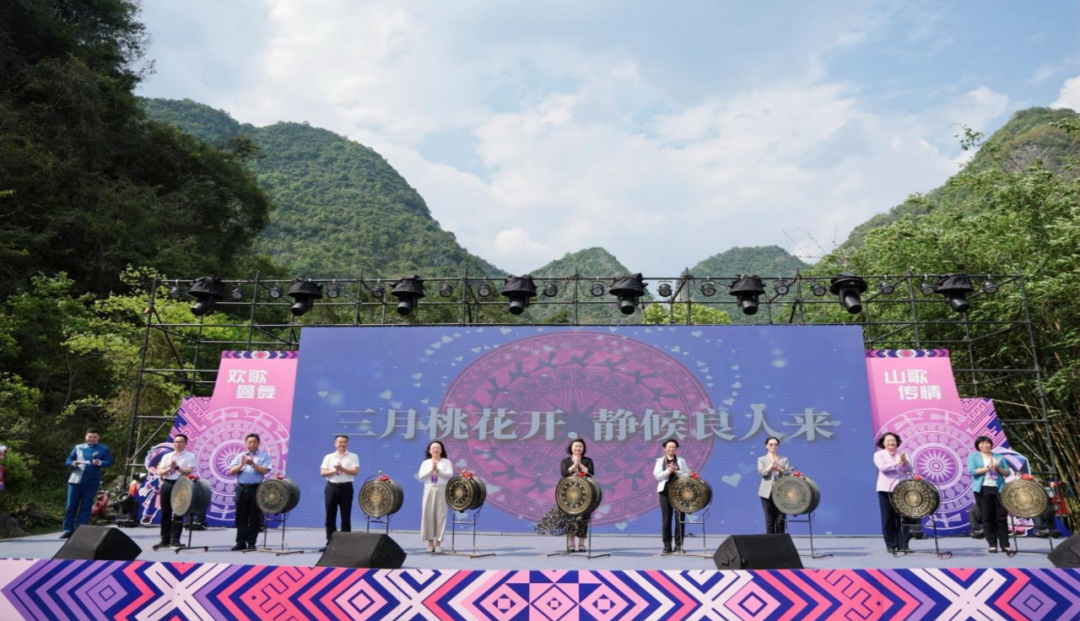 鵝泉邊,山水相映,山歌不斷。活動(dòng)伊始,竹竿舞迎賓環(huán)節(jié)以歡快的節(jié)奏拉開序幕,即刻讓現(xiàn)場嘉賓沉浸式感受八桂大地的熱情與活力。緊接著,一場別開生面的山歌對歌點(diǎn)燃全場——這邊高聲唱道“靖西鵝泉好風(fēng)光嘞,青山綠水繞身旁哎,哥妹相逢泉邊唱嘞,歡聲笑語滿山坡喲。”那邊隨即應(yīng)和:“青年結(jié)伴來相會(huì)嘞,真情不比彩禮錢哎,同心同路向前走嘞,幸福日子萬年長喲?!备杪暣似鸨朔瑢燕l(xiāng)“以歌會(huì)友、以歌傳情”的浪漫傳統(tǒng)演繹得淋漓盡致。