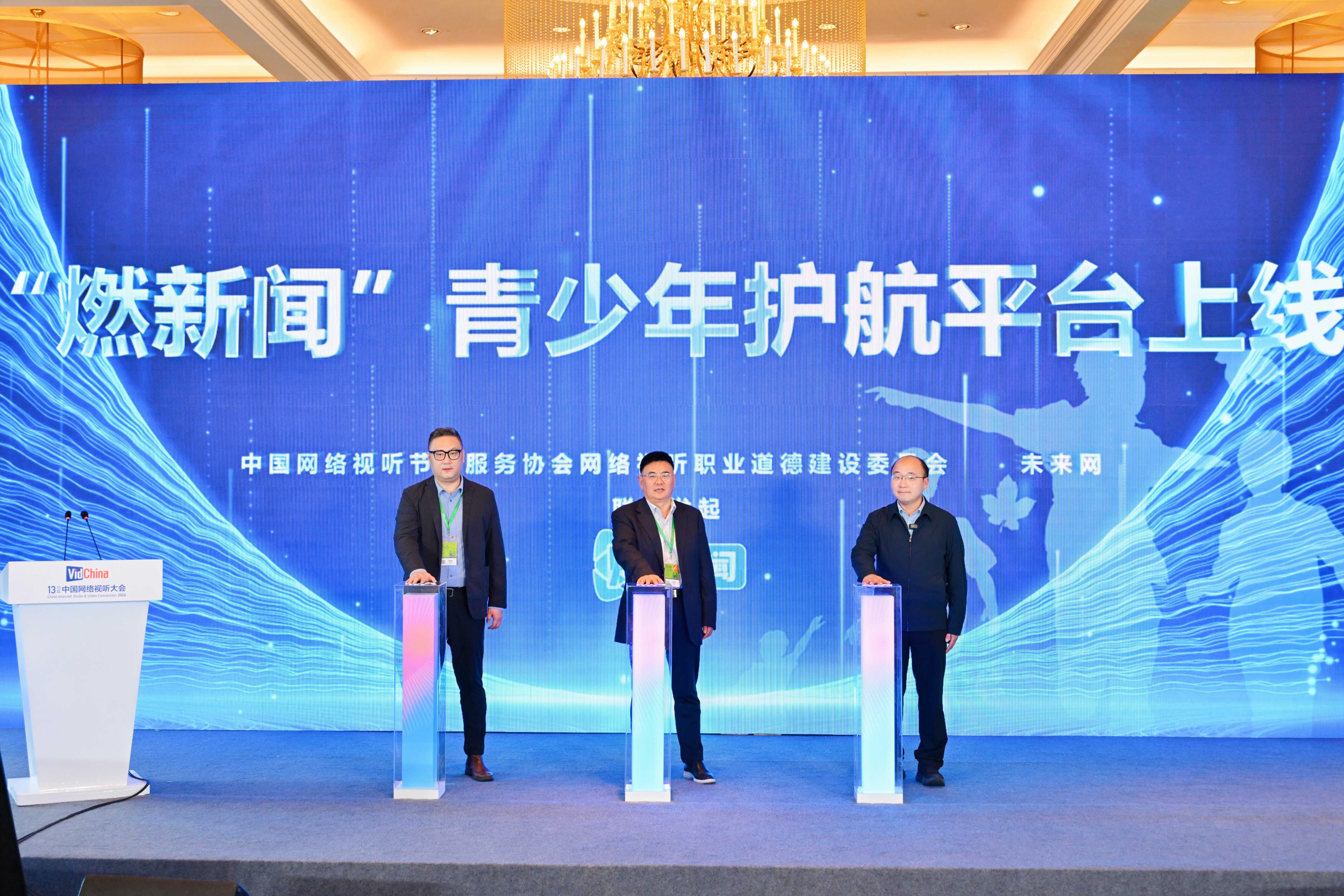 圖為4月14日,在第十三屆中國網(wǎng)絡(luò)視聽大會“網(wǎng)絡(luò)視聽公益和社會責(zé)任論壇”上,“燃新聞”青少年護(hù)航平臺正式上線