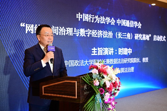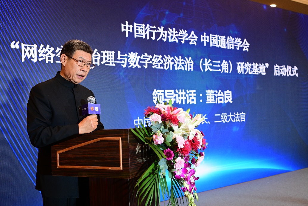 中國(guó)行為法學(xué)會(huì)會(huì)長(zhǎng)董治良在致辭中指出,“網(wǎng)絡(luò)空間治理”和“數(shù)字經(jīng)濟(jì)法治”已是世界范圍內(nèi)的熱門關(guān)鍵詞之一。近年來(lái),我國(guó)在網(wǎng)絡(luò)安全、數(shù)據(jù)安全領(lǐng)域立法取得了重大進(jìn)展,尤其是網(wǎng)絡(luò)安全法、數(shù)據(jù)安全法、個(gè)人信息保護(hù)法的頒布施行,標(biāo)志著我國(guó)網(wǎng)絡(luò)安全和數(shù)據(jù)保護(hù)的基礎(chǔ)性法律架構(gòu)已經(jīng)建立。相關(guān)的落實(shí)和細(xì)化基礎(chǔ)性法律的行政法規(guī)、地方性法規(guī)和政府規(guī)章還在制定過(guò)程中??梢哉f(shuō),我國(guó)數(shù)據(jù)安全保障能力在不斷提升,數(shù)據(jù)開(kāi)發(fā)利用和產(chǎn)業(yè)發(fā)展得到法律的支持和保障,我國(guó)數(shù)據(jù)潛力即將得以極大釋放,產(chǎn)出巨量的經(jīng)濟(jì)成果。在這樣的大背景下,我們啟動(dòng)成立“網(wǎng)絡(luò)空間治理與數(shù)字經(jīng)濟(jì)法治(長(zhǎng)三角)研究基地”,以加強(qiáng)網(wǎng)絡(luò)治理與數(shù)字法治理論和實(shí)踐問(wèn)題研究,可謂恰逢其時(shí),意義重大。希望研究基地圍繞黨中央決策部署和國(guó)家戰(zhàn)略規(guī)劃,準(zhǔn)確對(duì)標(biāo)新時(shí)代的新要求,聚合國(guó)內(nèi)外優(yōu)勢(shì)科研力量,加強(qiáng)數(shù)字治理、數(shù)據(jù)確權(quán)、數(shù)據(jù)共享、數(shù)據(jù)開(kāi)放、數(shù)字政府等領(lǐng)域的理論研究,撰寫高層次專題報(bào)告,努力形成一批有辨識(shí)度、有影響力又實(shí)效管用的數(shù)字法治研究成果,把研究基地辦成覆蓋長(zhǎng)三角地區(qū)、服務(wù)全國(guó)的網(wǎng)絡(luò)治理與數(shù)字經(jīng)濟(jì)法治高端專業(yè)智庫(kù)。