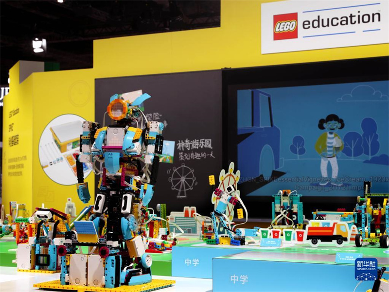 第四屆中國(guó)國(guó)際進(jìn)口博覽會(huì)樂(lè)高展臺(tái)(2021年11月5日攝)。新華社記者 劉穎 攝