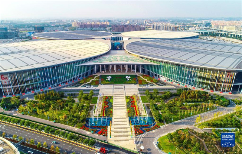 3日的上海,秋高氣爽,形似“四葉草”的國(guó)家會(huì)展中心(上海)裝點(diǎn)一新。