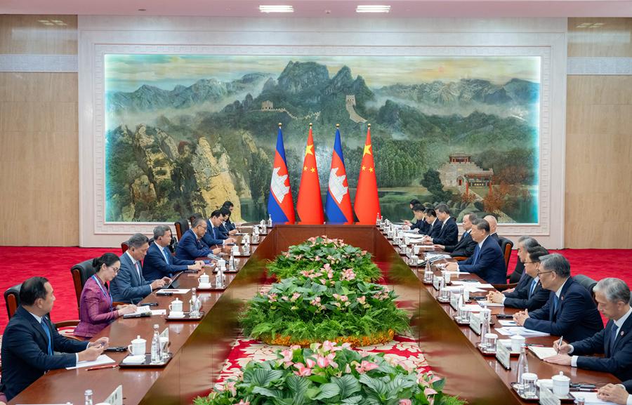 8月30日下午,國家主席習(xí)近平在天津迎賓館會見來華出席2025年上海合作組織峰會的柬埔寨首相洪瑪奈。新華社記者 翟健嵐 攝