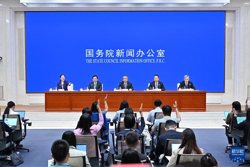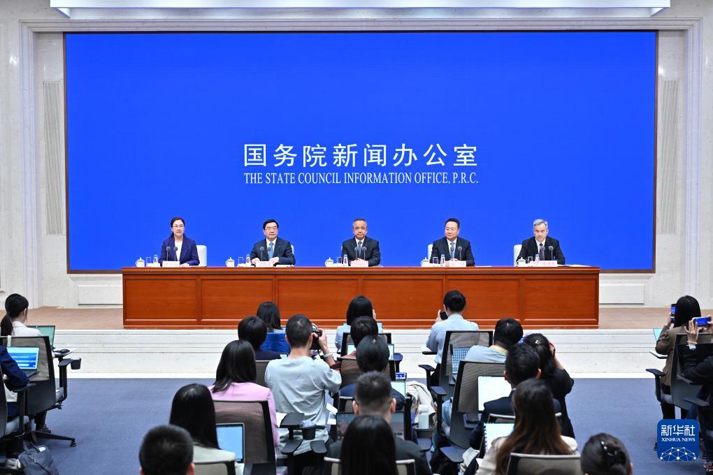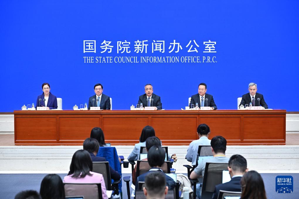 9月19日,國務院新聞辦公室在北京舉行新聞發(fā)布會,發(fā)布《新時代黨的治疆方略的成功實踐》白皮書,中央宣傳部副部長王綱,新疆維吾爾自治區(qū)黨委副書記、自治區(qū)主席艾爾肯·吐尼亞孜,新疆維吾爾自治區(qū)黨委常委、自治區(qū)常務副主席陳偉俊,新疆維吾爾自治區(qū)黨委常委、宣傳部部長王建新出席,介紹白皮書有關情況并答記者問。新華社記者 李鑫 攝