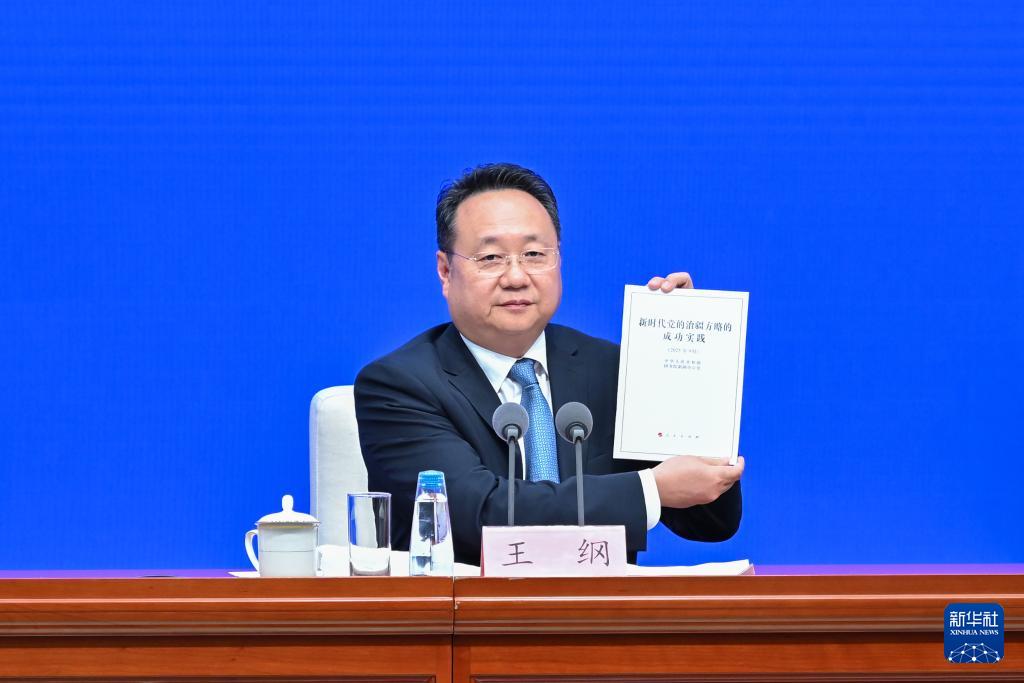 9月19日,國務院新聞辦公室在北京舉行新聞發(fā)布會,發(fā)布《新時代黨的治疆方略的成功實踐》白皮書,中央宣傳部副部長王綱,新疆維吾爾自治區(qū)黨委副書記、自治區(qū)主席艾爾肯·吐尼亞孜,新疆維吾爾自治區(qū)黨委常委、自治區(qū)常務副主席陳偉俊,新疆維吾爾自治區(qū)黨委常委、宣傳部部長王建新出席,介紹白皮書有關情況并答記者問。這是王綱展示《新時代黨的治疆方略的成功實踐》白皮書。新華社記者 李鑫 攝