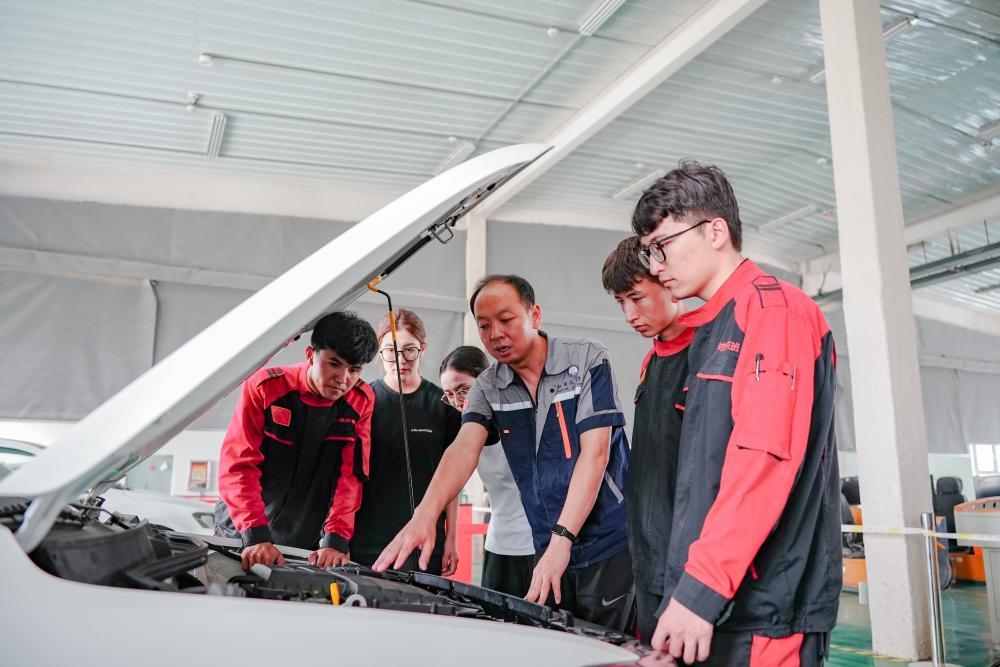 2025年6月27日,在新疆和田技師學院,援疆教師李寶(中)和當?shù)亟處熞煌笇W生維修汽車。該校是北京市對口援疆幫扶單位之一,2020年以來,北京市向該校派出3批次累計30人次的援疆教師隊伍,他們在參與學校管理、承擔教學任務(wù)的基礎(chǔ)上,還主動開展“傳幫帶”培養(yǎng)當?shù)亟處?,積極組織和指導學生參與各類技能競賽,為當?shù)芈殬I(yè)技術(shù)教育高質(zhì)量發(fā)展貢獻力量。