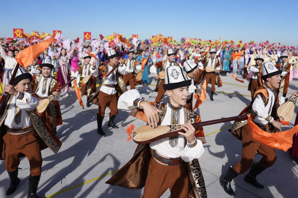 新華社記者的鏡頭里,各族兒女簇擁在一起,歡笑在一起;明艷的服飾、熱烈的歌舞,無不展現(xiàn)出團結(jié)與奮進的力量。