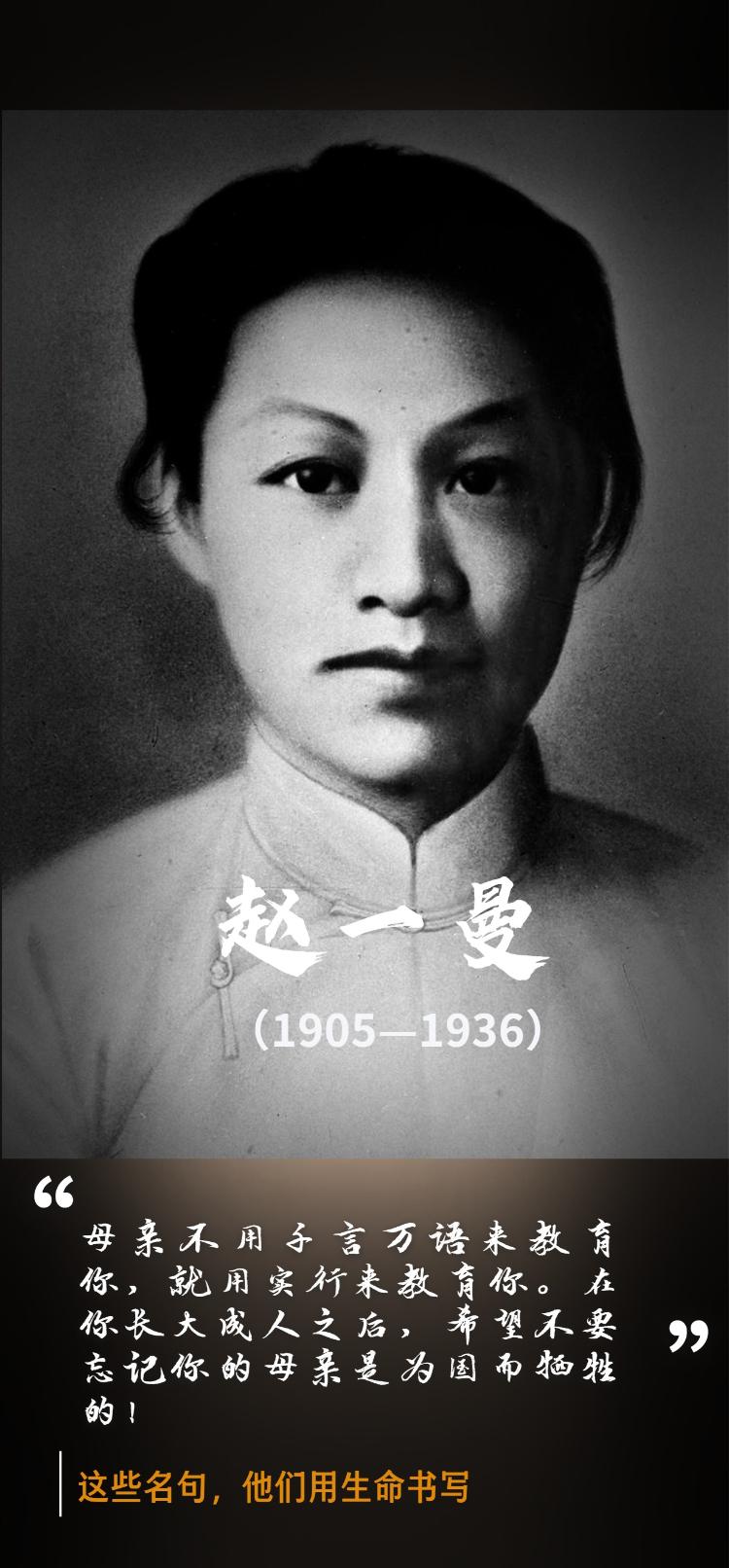 趙一曼,原名李坤泰,1905年10月25日出生在四川宜賓的一個地主家庭。1923年冬,趙一曼加入中國社會主義青年團(tuán)。1926年夏加入中國共產(chǎn)黨。 1935年秋,趙一曼任東北抗日聯(lián)軍第3軍1師2團(tuán)政治委員。11月間,第2團(tuán)被日偽軍圍困于一座山間。趙一曼為掩護(hù)部隊(duì)突圍,身負(fù)重傷,養(yǎng)傷期間被日軍發(fā)現(xiàn),戰(zhàn)斗中再度負(fù)傷,昏迷被俘。1936年8月2日,趙一曼壯烈犧牲,年僅31歲。