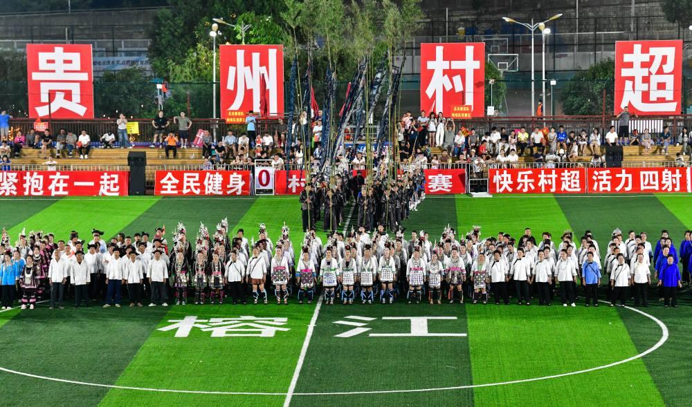2025年8月23日,村民們在貴州“村超”球場演唱侗族大歌。當(dāng)日,2025年首屆“村超”全國賽總決賽在貴州榕江縣“村超”球場舉行。賽事期間同時舉辦豐富多彩的民族歌舞展演、無人機(jī)表演、大型煙花秀,吸引數(shù)萬觀眾現(xiàn)場觀賽。近年來,貴州“村超”“村BA”等草根賽事持續(xù)升溫,巧妙融合體育競技、民族文化與文旅消費(fèi),打造“體育+”模式,撬動鄉(xiāng)村流量與經(jīng)濟(jì)增量,賦能鄉(xiāng)村振興。