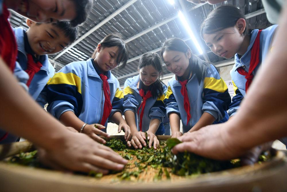 2024年12月3日,學(xué)生們在廣西梧州市蒼梧縣六堡鎮(zhèn)塘平小學(xué)學(xué)習(xí)制作六堡茶。廣西六堡茶已有1500多年的歷史,其制作工藝被列入第四批國家級非物質(zhì)文化遺產(chǎn)代表性項目名錄。近年來,廣西圍繞打造千億元茶產(chǎn)業(yè)發(fā)展目標(biāo),深入實(shí)施綠色高效茶園建設(shè)、品牌提升和營銷體系建設(shè)、產(chǎn)業(yè)融合和茶文化提升等多項工程,形成了以六堡茶為引擎,早春茶等特色優(yōu)勢茶協(xié)同發(fā)展的產(chǎn)業(yè)格局,茶產(chǎn)業(yè)煥發(fā)勃勃生機(jī)。六堡茶正沿21世紀(jì)海上絲綢之路運(yùn)達(dá)八方,香飄海內(nèi)外。2024年,廣西六堡茶產(chǎn)量達(dá)到4.3萬噸,綜合產(chǎn)值超300億元。