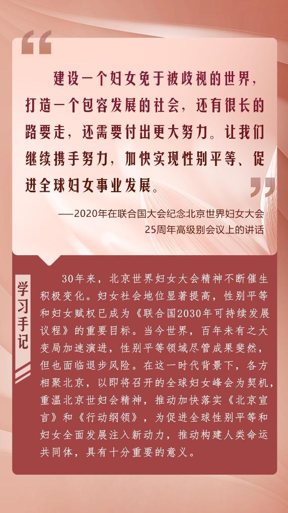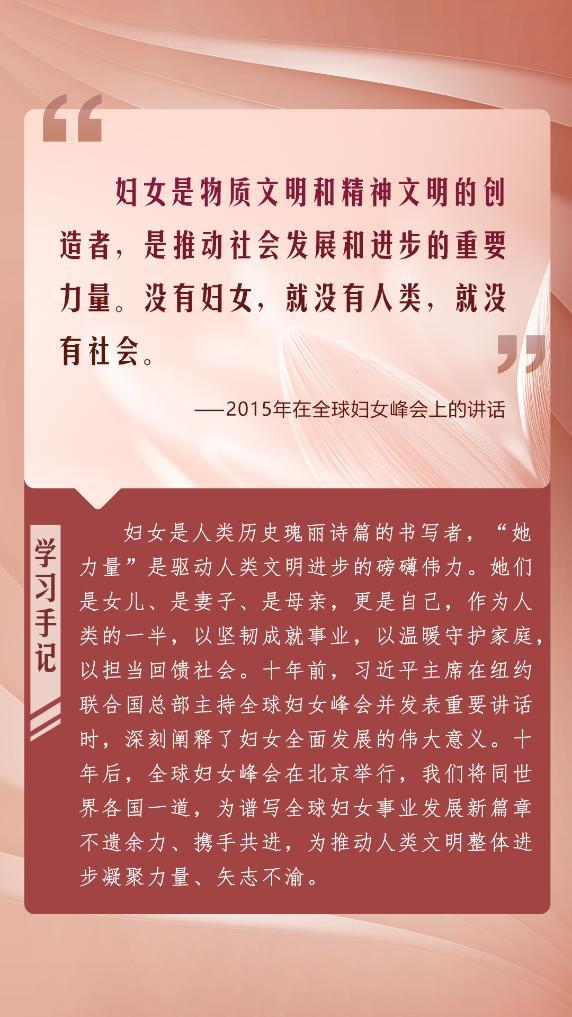 在全球婦女峰會(huì)即將舉行之際,我們重溫習(xí)近平總書記的重要論述,共同展望婦女發(fā)展的美好未來(lái),期待全球婦女事業(yè)發(fā)展譜寫新的絢爛篇章。